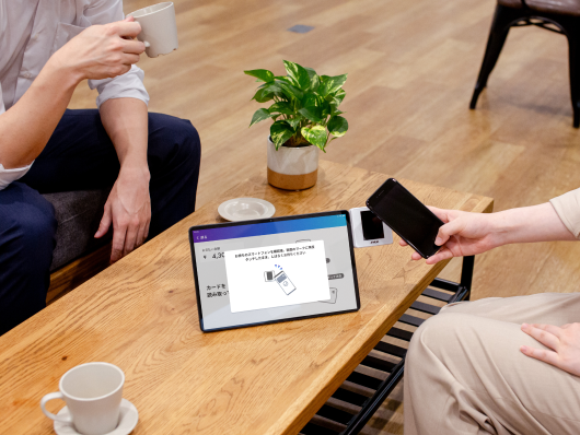 テーブル上でのセルフ決済から、オーダリング端末での決済、食事宅配時の軒先決済まで、あらゆるシーンに柔軟に対応しています。